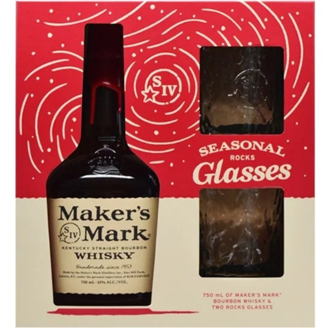 This Maker's Mark set is the perfect gift for the bourbon fan on your holiday shopping list. It comes with 2 seasonal rocks glasses and one 750mL bottle.